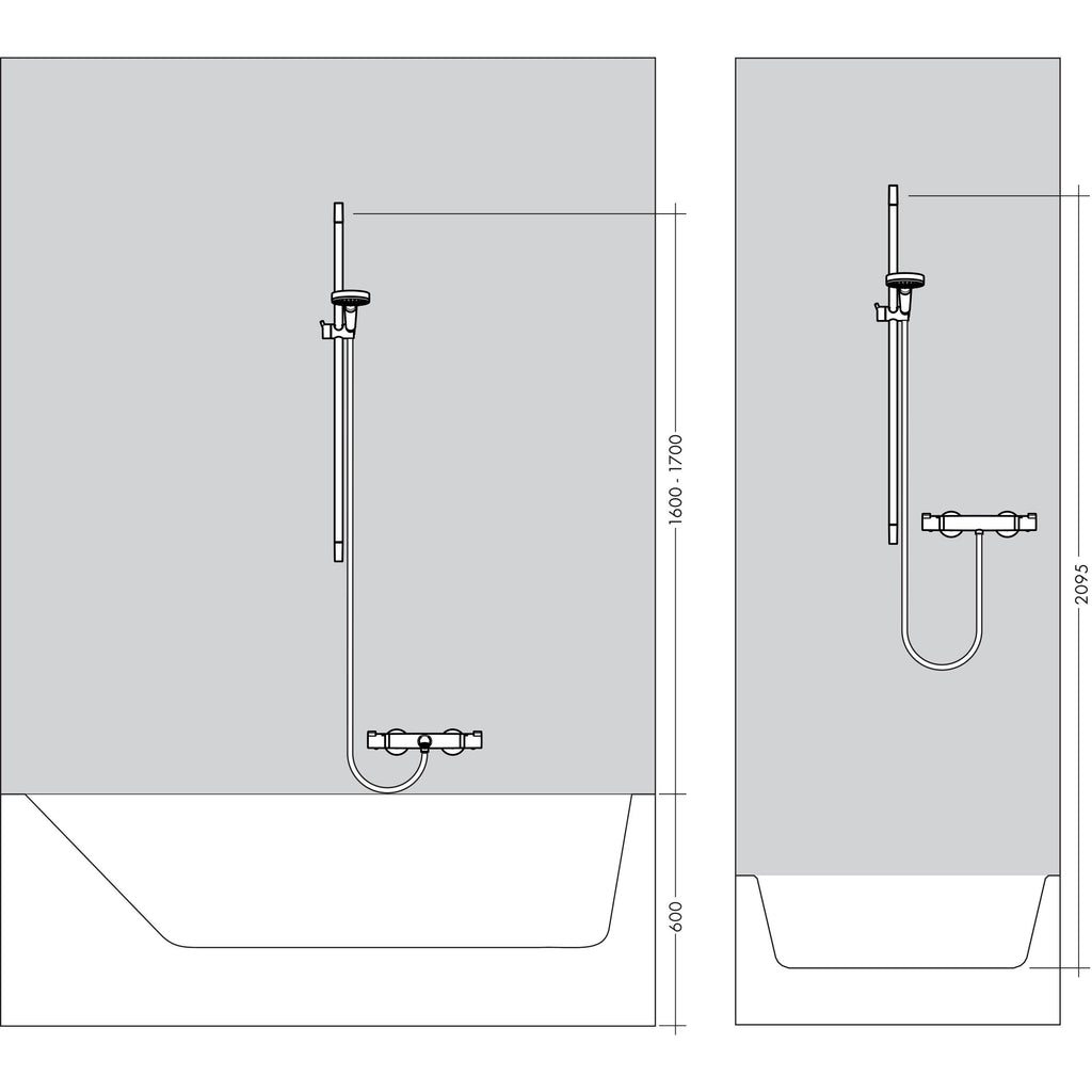 - Consists of: hand shower, shower bar, shower hose, slider