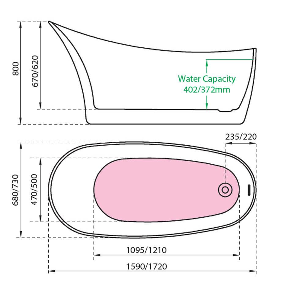- Elegant, contemporary slim edged slipper bath