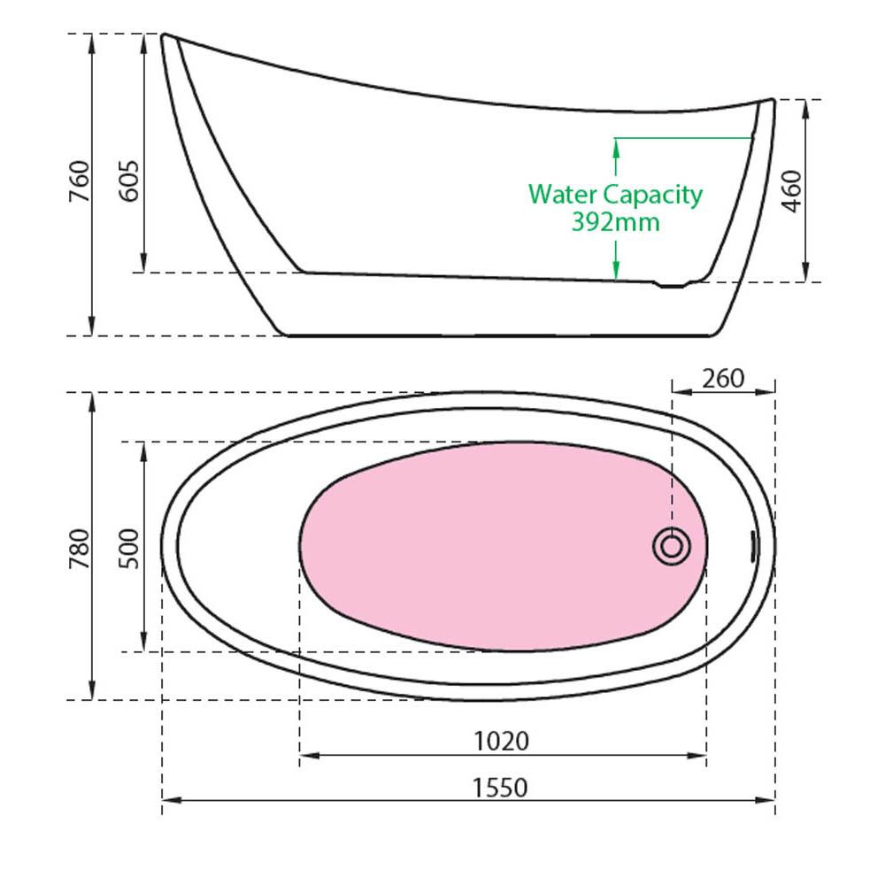 - Elegant, contemporary slim edged freestanding bath