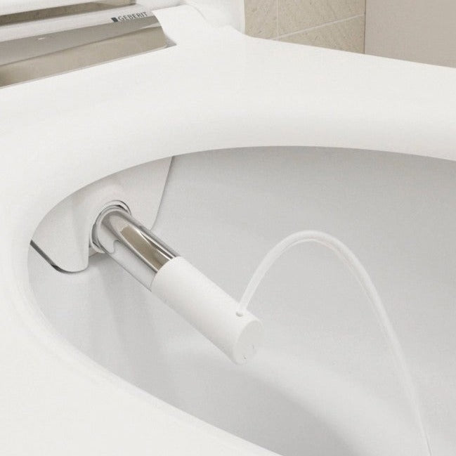 Geberit AquaClean Sela Rimless Wall Hung Smart Toilet - White Hinge