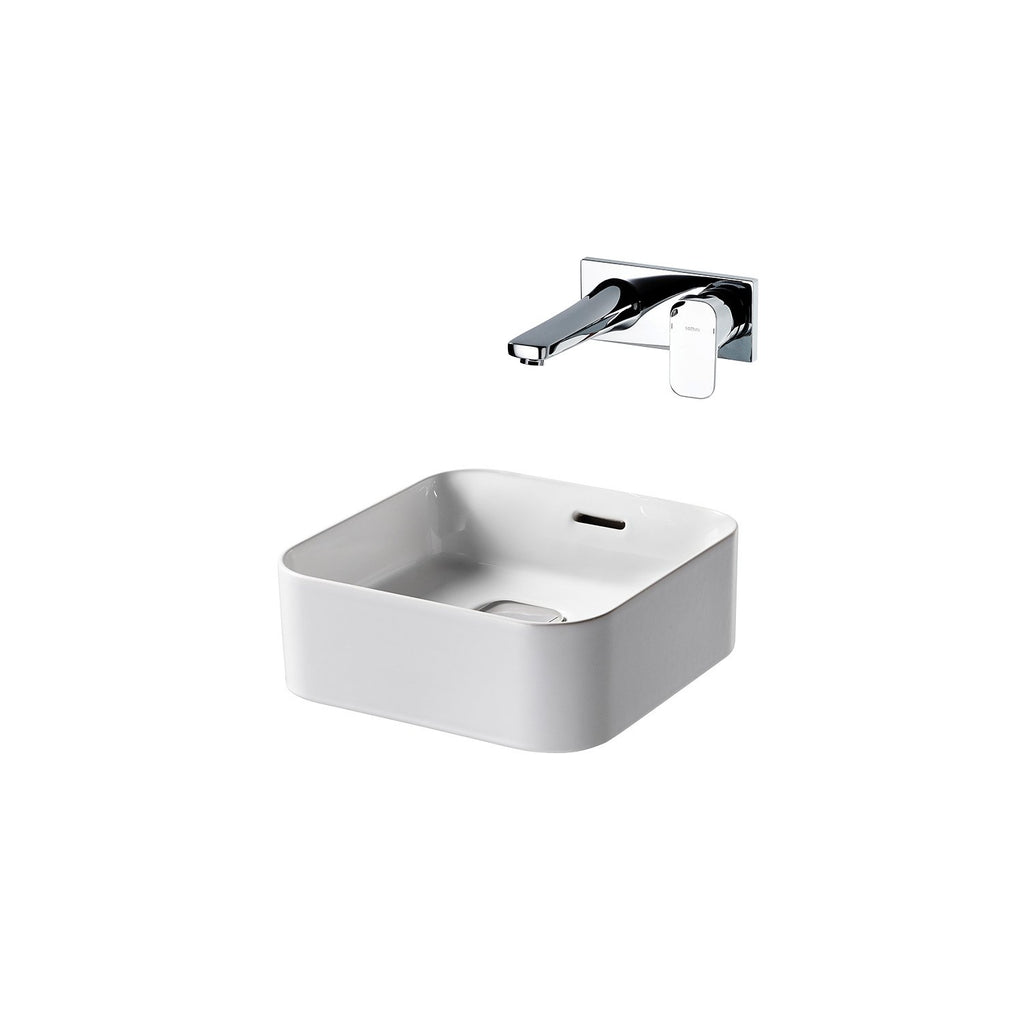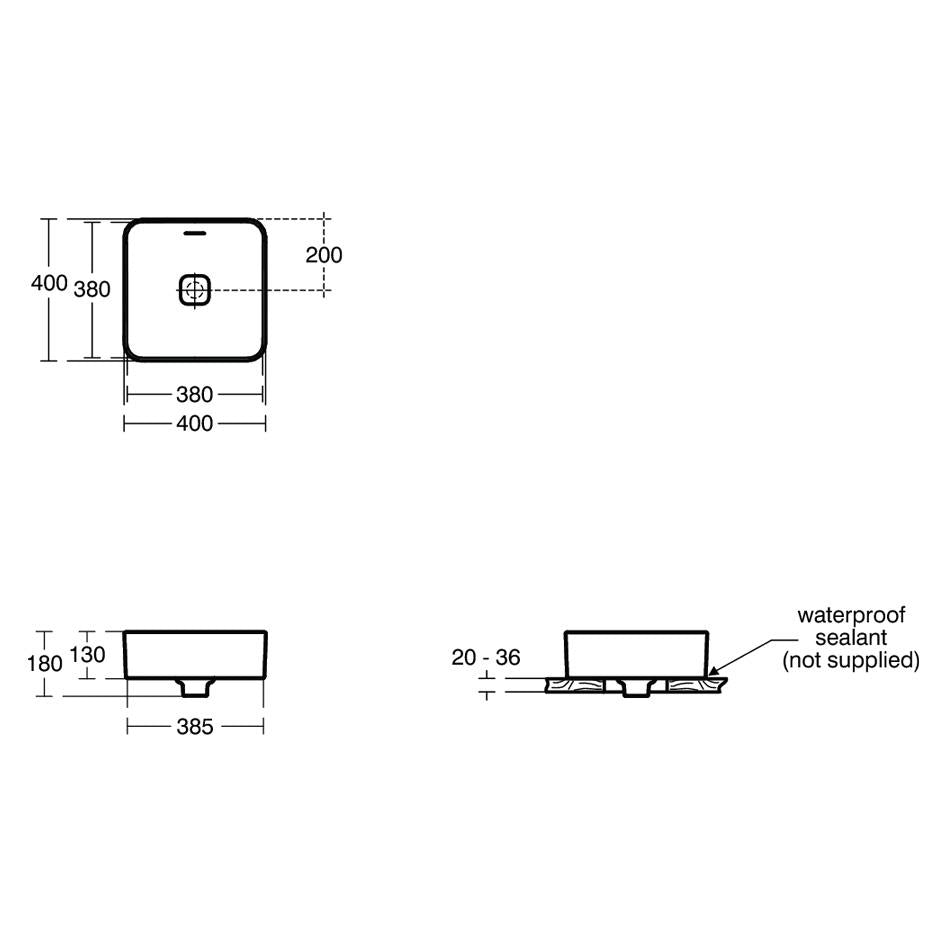 • U857801: Fusaro 40cm Square Vessel Washbasin, No Taphole With Overflow And Integral Clicker Waste