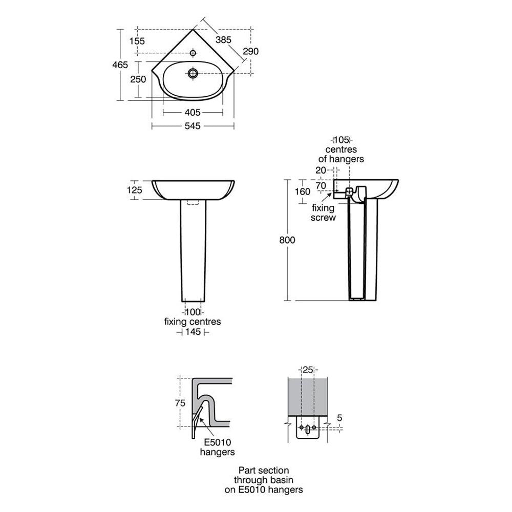 Sottini Mavone / Ideal Standard Tesi - 45cm Corner Full Pedestal Basin - 1TH