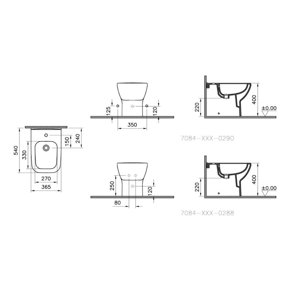 • 7084B003-0288: VitrA Integra Square Back to Wall Bidet - White
