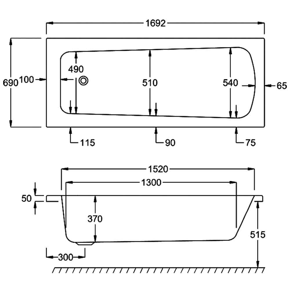 • 02044: Britannia 1700x700mm Carronite Bath - White