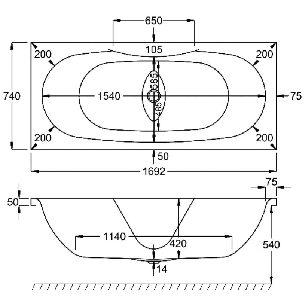 • 02091: Equation 1700x750mm Carronite Bath - White
