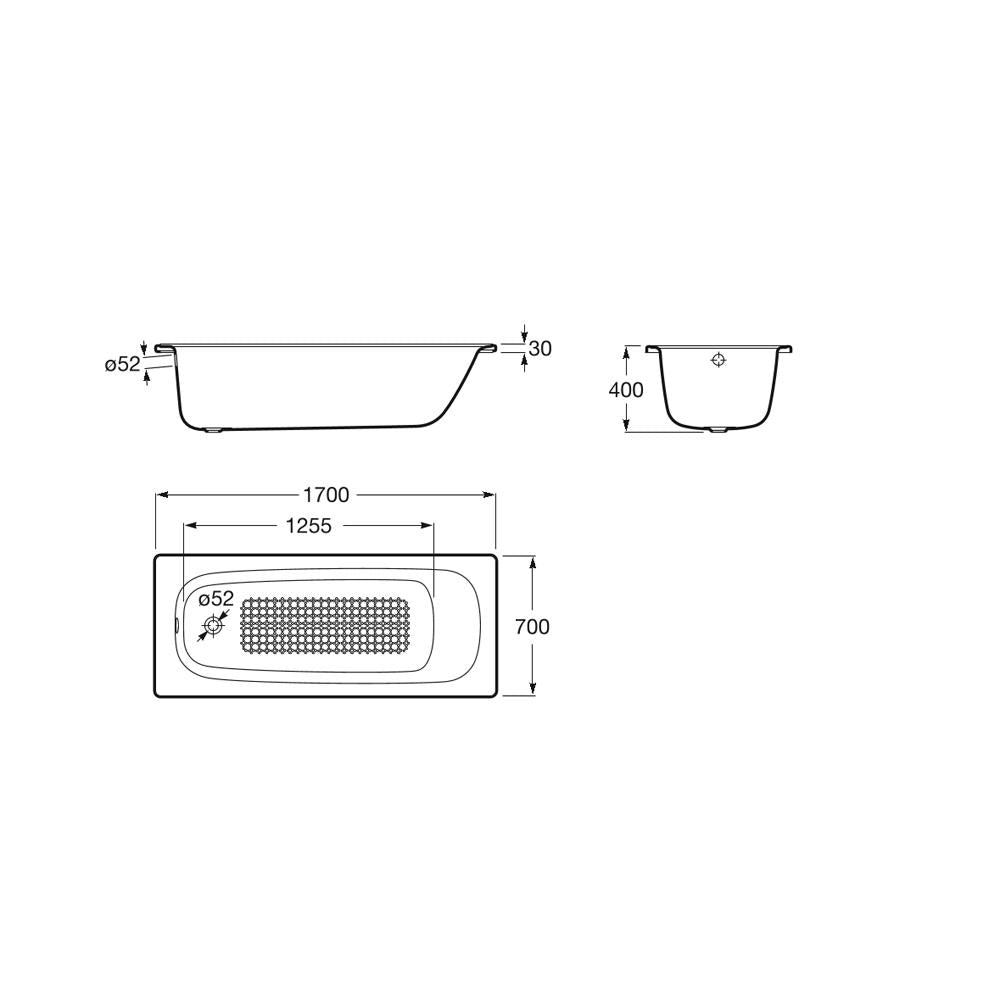 Roca Contesa Plus 16/1700mm Single Ended Bath with Anti-Slip