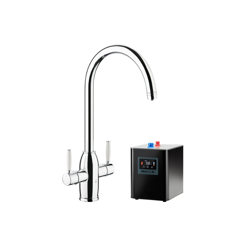 - Stylish 4 way mixer tap delivering domestic hot and cold ambient and 80-98°C filtered water