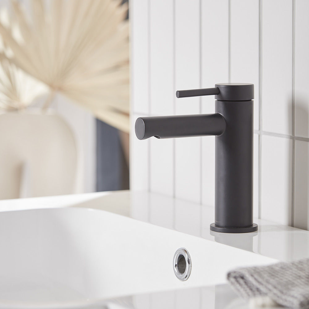 Tavistock Anthem Mini Basin Mixer Tap with Click Waste - Matt Black
