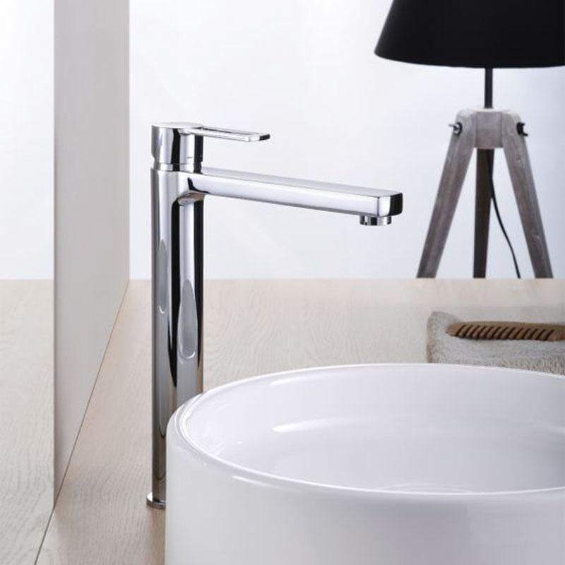 Designed around a smooth, cylindrical tap post, each Bavera mono tap features a soft square spout and a designer handle. There are two tap styles available in the collection - a standard fitting in a choice of gleaming chrome or stylish matt black, or a high spout option with a taller, slender profile.