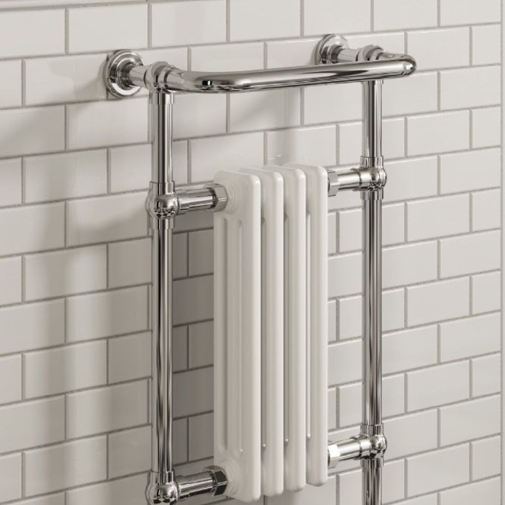 The Reina Alicia Traditional Towel Radiator blends timeless elegance with modern functionality, crafted from high-quality mild steel. Available in chrome or white, its classic design fits seamlessly into any decor, measuring 950mm in height and 475mm in width. With a heat output of 3431 BTU, the Reina Alicia ensures warmth and comfort while enhancing your home's aesthetic appeal.
