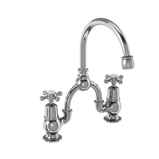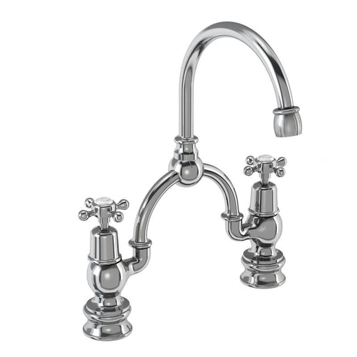 Original price £493.00Current price £398.00| /Burlington 2 Tap Hole Bridge Basin Mixer with High Central Indice with Plug and Chain Waste and Swivel Spout