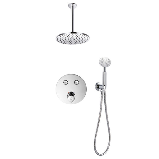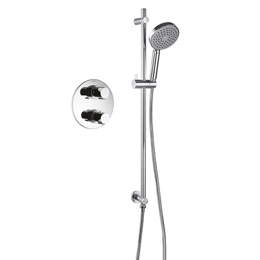FlovaAllore GoClick® thermostatic 2-outlet shower valve with fixed head and handshower kit Diamond Chrome Finish 100% Solid Brass 15 Year Guarantee Addi...