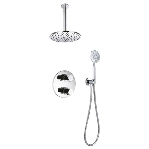 FlovaAllore thermostatic 2-outlet shower valve with fixed head and handshower kit Diamond Chrome Finish 100% Solid Brass 15 Year Guarantee Additional In...