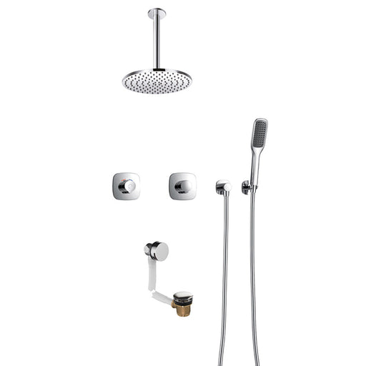 FlovaAllore thermostatic 3-outlet shower valve with fixed head, handshower kit and bath overflow filler Diamond Chrome Finish 100% Solid Brass 15 Year G...