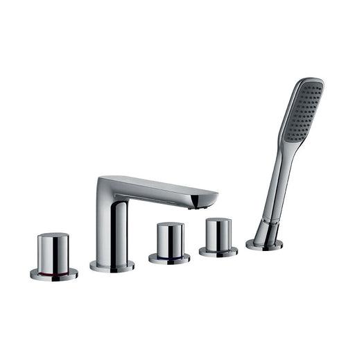 FlovaAllore 5-hole deck mounted bath and shower mixer with shower set Diamond Chrome Finish 100% Solid Brass Includes Clicker Waste German Flush Ceramic...