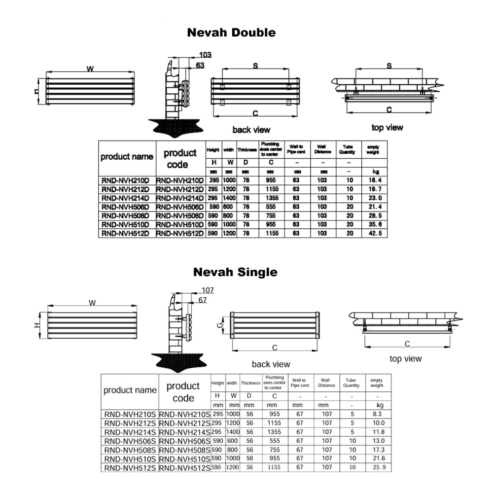 The Nevah Radiator showcases elegant oval horizontal tubes and is offered in both single and double models, providing flexible heating solutions for any room. Made from robust steel, it ensures excellent heat emission and is available in a remarkable array of colors. With a 5-year warranty, the Nevah blends modern design with dependability and efficiency, making it a fantastic addition to your home.