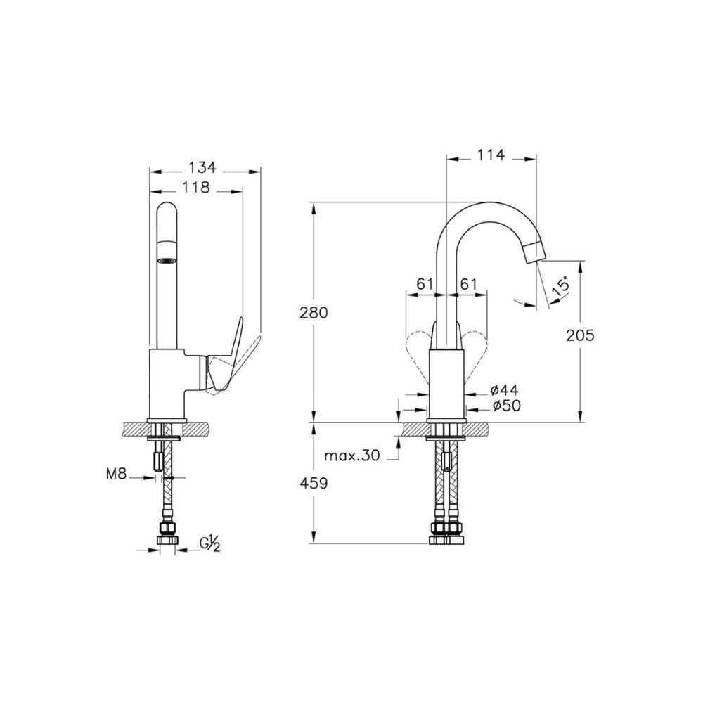 - Low Pressure Deck Mounted Chrome Basin Mixer