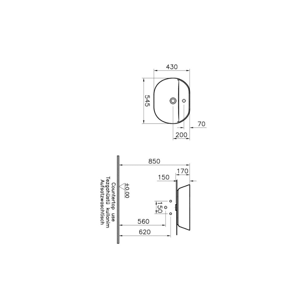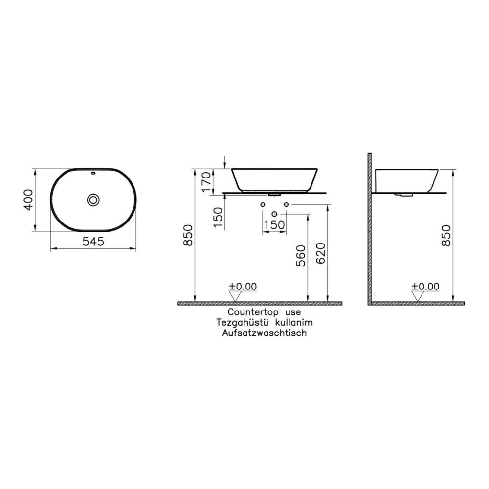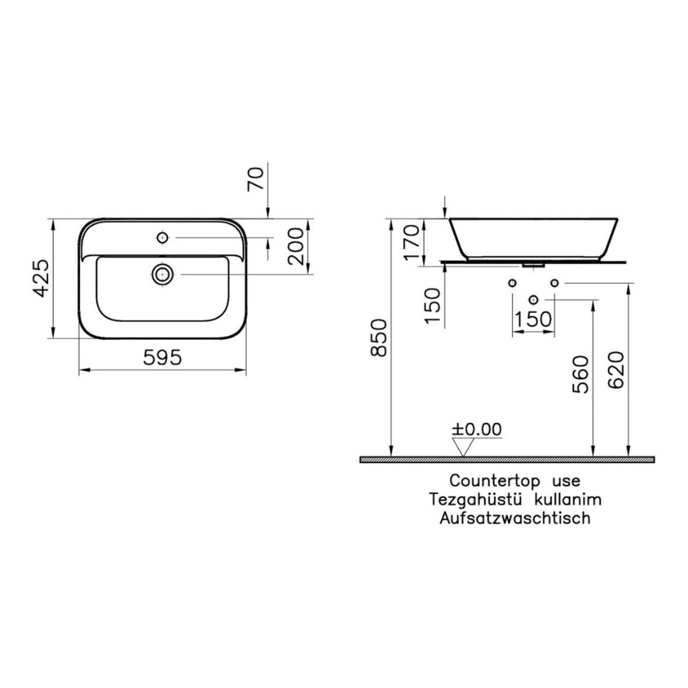 • 7425B003-0012: VitrA Geo 600x400mm 0TH Basin w/Overflow - White