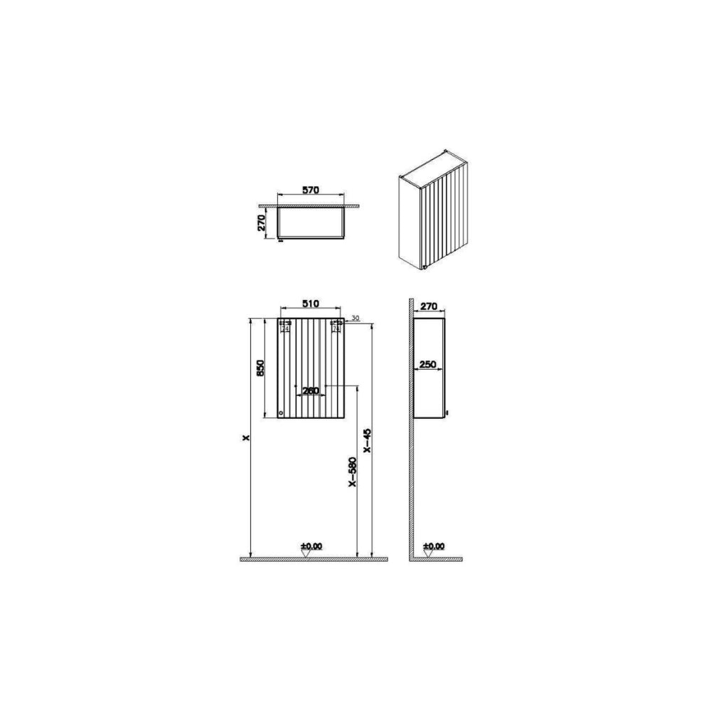 • 69165: VitrA Root Groove 60cm 1 Door Upper/Wall Unit (LH Hinge) - Matt Grey