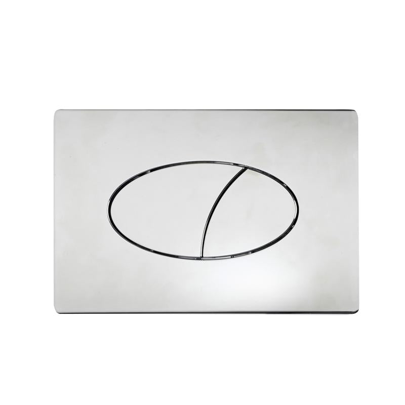 A chrome dual flush plate with an elliptical button design. Designed to be used with concealed cistens and wall hung WC frames.