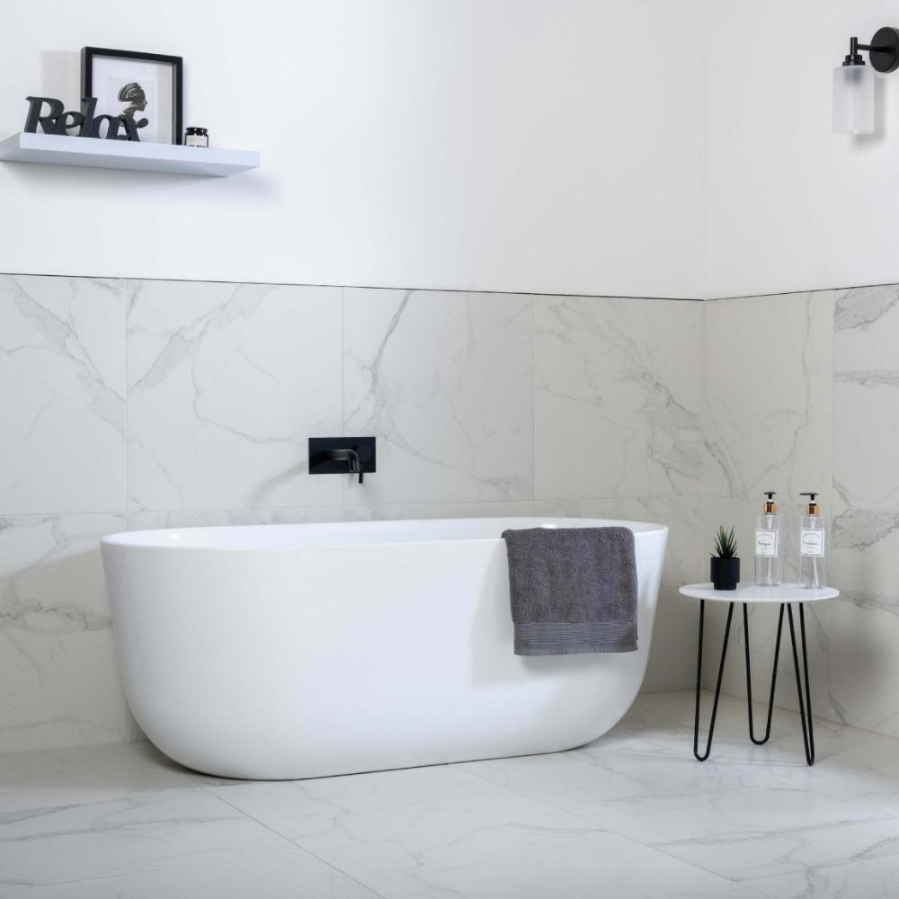 These Palatina 60.5X60.5 gloss Tiles have a stylish marble effect design in a gloss finish. They're made from porcelain and measure 605x605mm.