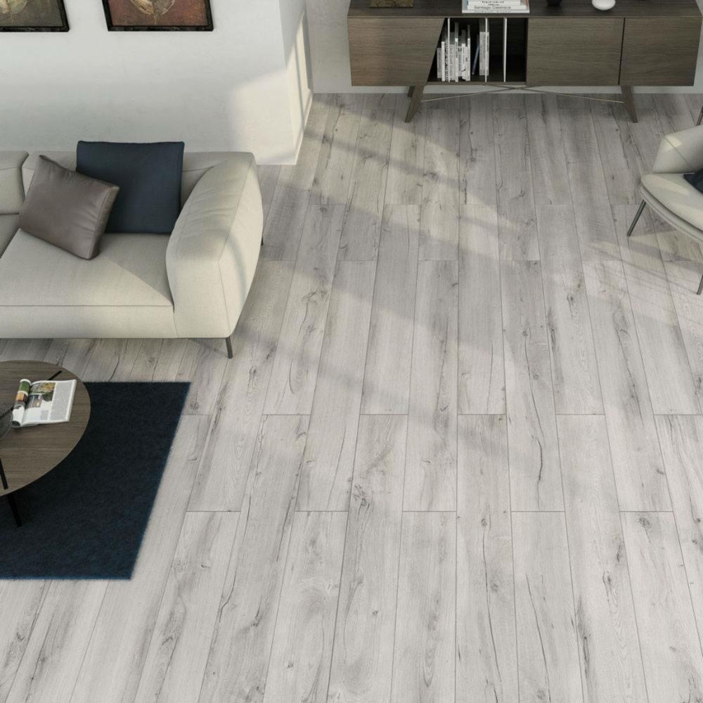 These Mumble G Grey 195X1215 Tiles have a stylish wood effect design in a matt finish. They're made from porcelain and measure 195x1215x10mm.