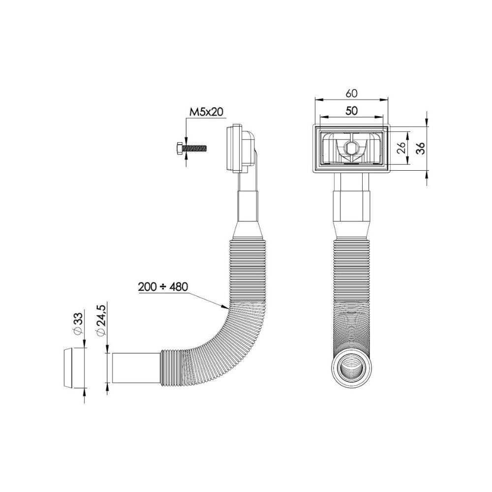 - Flexible pipe connects overflow outlet to basket strainer waste