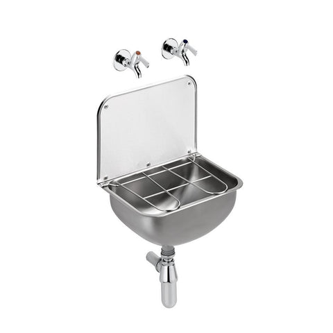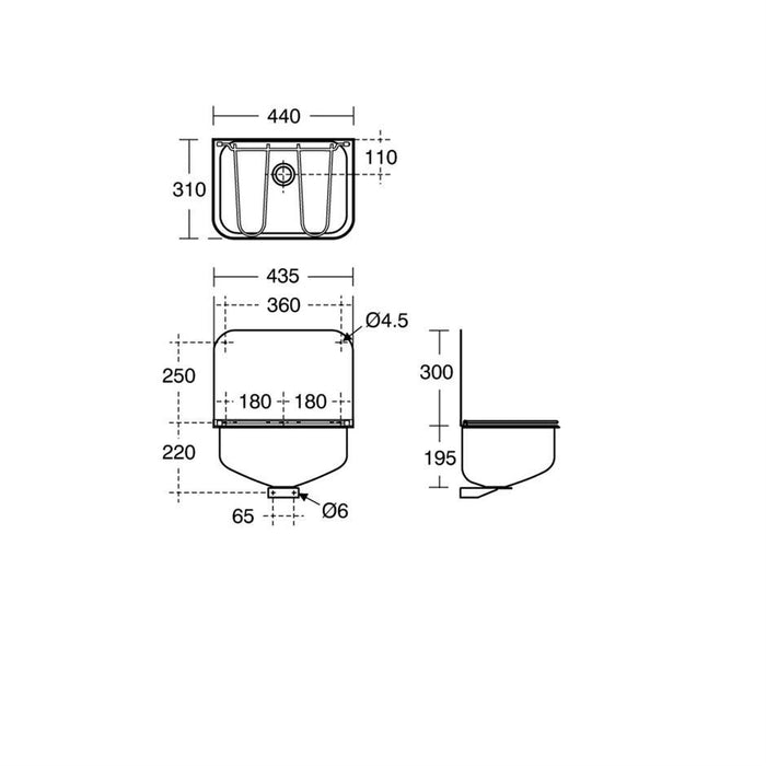 General purpose cleaners' sink with 28cm high splash back and bucket grating. Manufactured from 18 gauge stainless steel sheet with satin finish, with earthing tag.