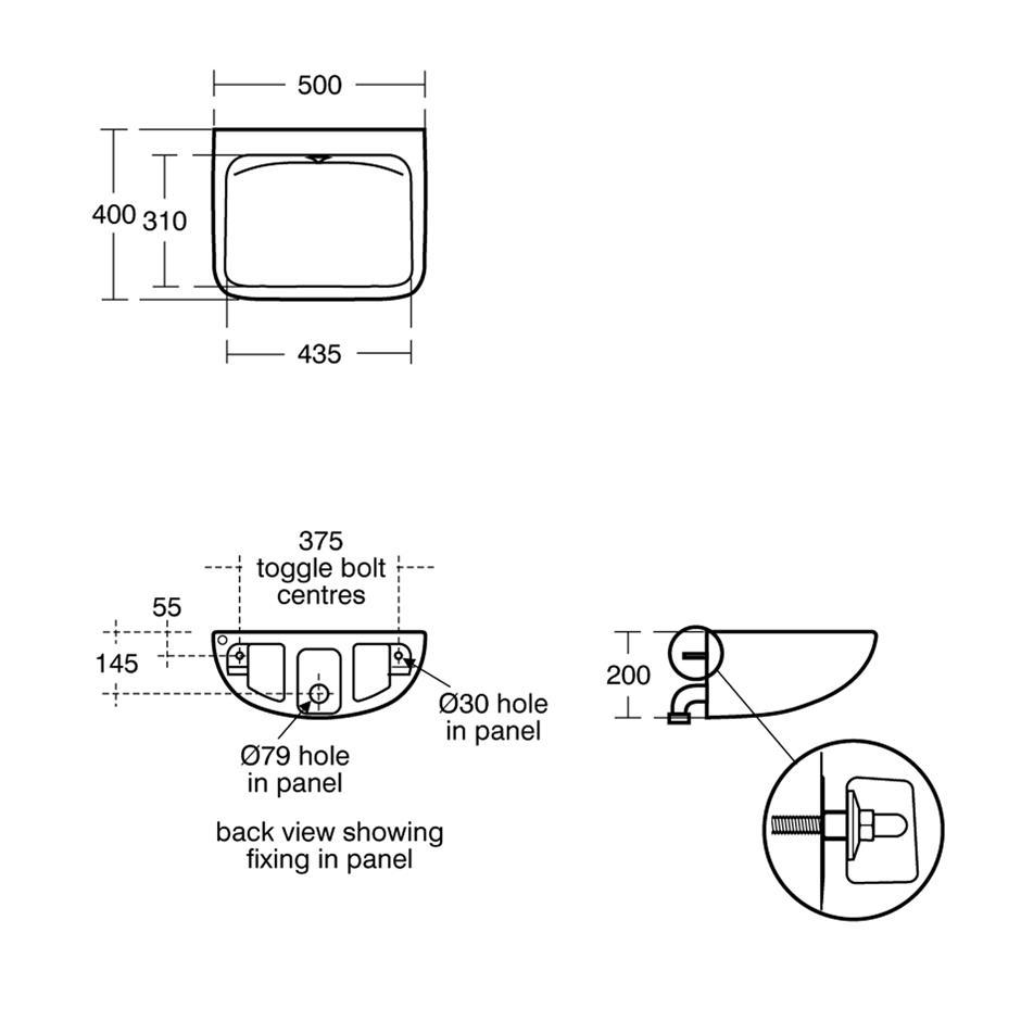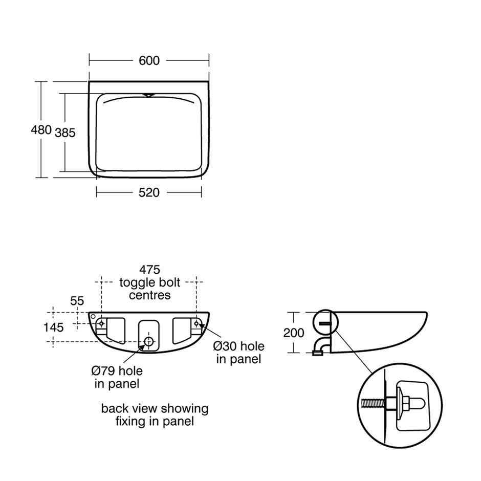 Suggested rim heights; 780-800mm. Washbasin panel mounted using the S0388 Contour 21+ fixation set.