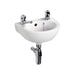 Sandringham 21 handrinse washbasins in vitreous china, 45cm and corner handrinse washbasins also available. This smaller 35cm washbasin is suitable for restricted space applications and is supplied in 1 or 2 taphole for wall fixing only.