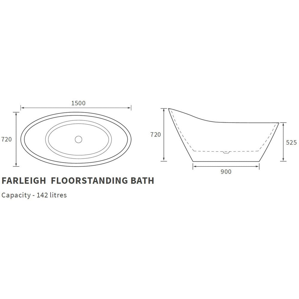 Bliss BLIS104116 Saros Freestanding 1500 x 720 x 720mm Bath