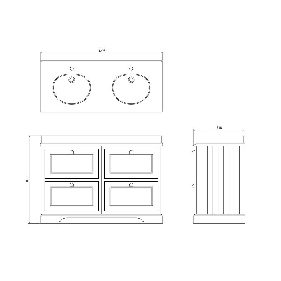 - BW12: MINERVA WHITE WITH DOUBLE VANITY BOWL 1296x548x25