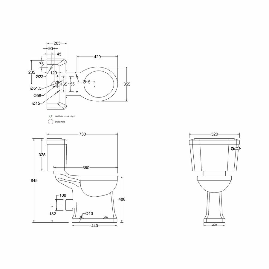 Water Inlet valve hole is located on the base of cistern tank on the right hand side
