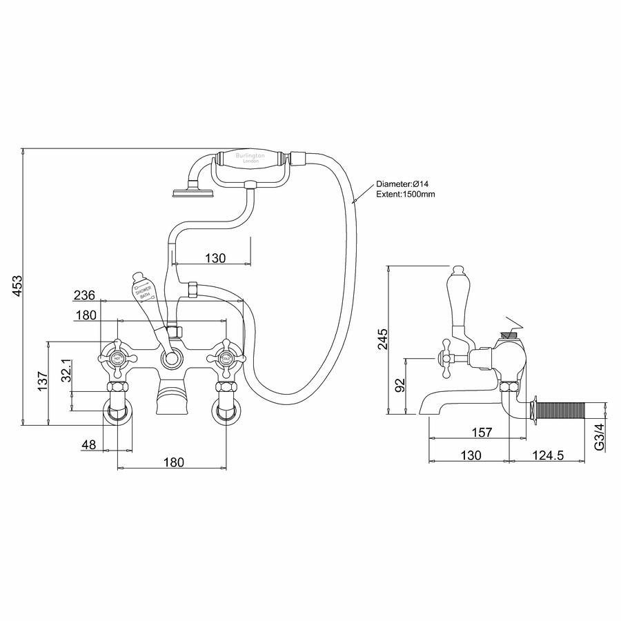 - T8: Bath shower mixer (Including the standard cradle, 'S' adjuster, ceramic diverter, hose, ceramic telephone handset, excluding tap heads, bases and unions)