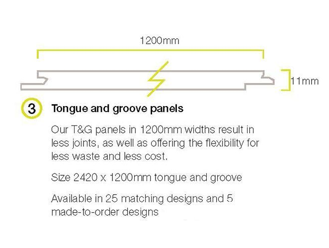With Tongue and Groove on both sides to fit with post-formed panels or other tongue and groove panels. The joins are virtually invisible and don't require joining strips like other panelling products.