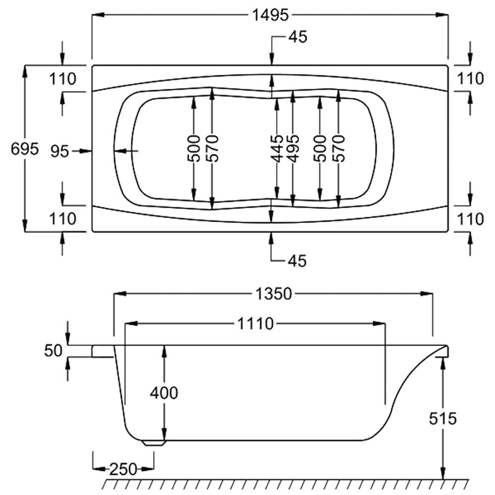 - Available in Sizes: 1400mm (L) x 700mm (W) x 400mm (D) x 515mm (H), 1500mm (L) x 700mm (W) x 400mm (D) x 515mm (H), 1600mm (L) x 700mm (W) x 400mm (D) x 515mm (H), 1675mm (L) x 700mm (W) x 400mm (D) x 515mm (H), 1700mm (L) x 700mm (W) x 400mm (D) x 515mm (H), 1800mm (L) x 750mm (W) x 420mm (D) x 540mm (H)