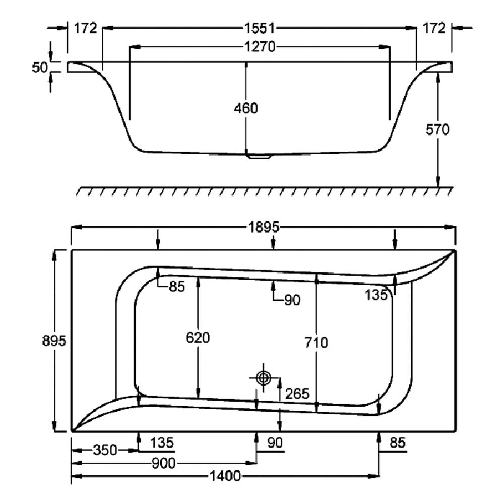 - Available in Sizes: 1900mm (L) x 900mm (W) x 460mm (D) x 570mm (H)