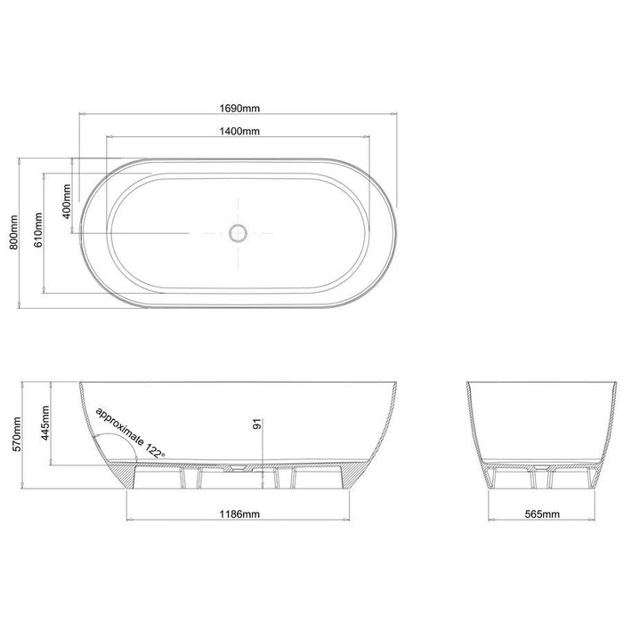 | Material | Bath - Sedimentary stone composite with Gibbsite mineral filler |