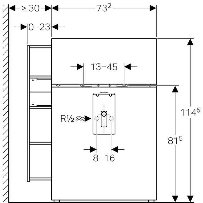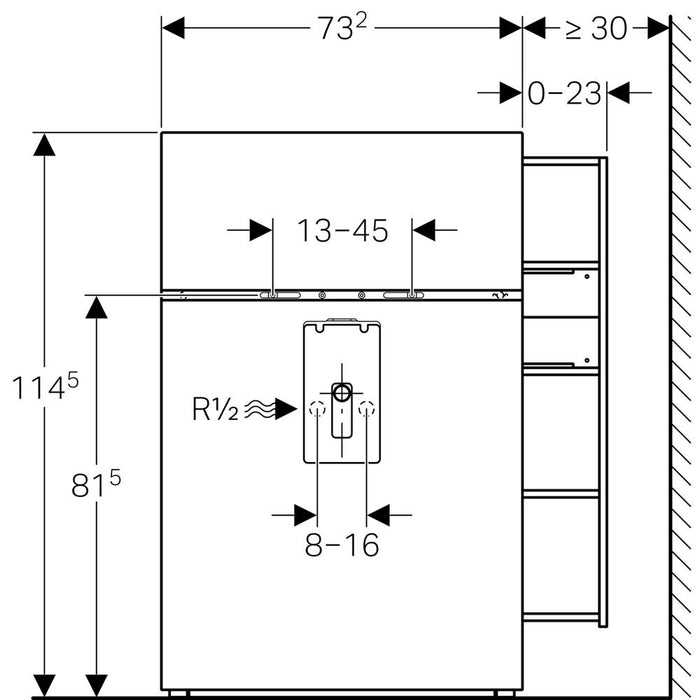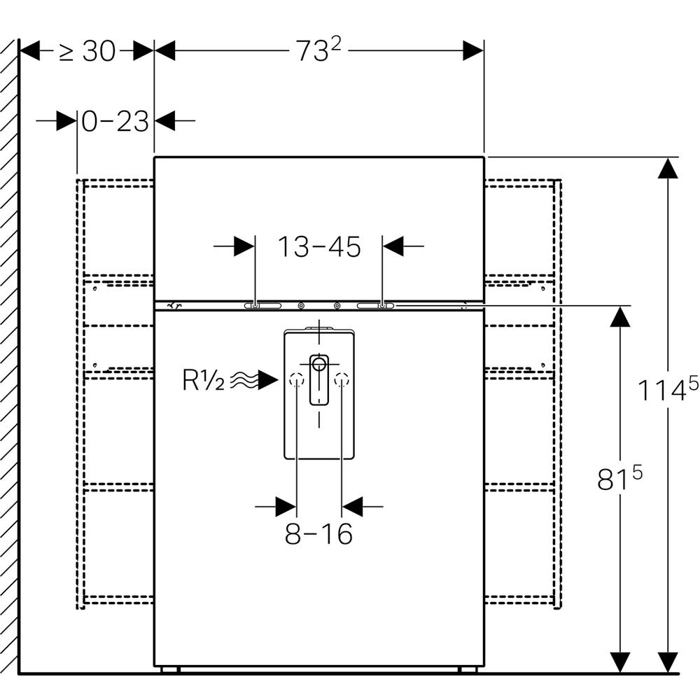 - Fastening distance for washbasin 13-31 cm, expandable to 45 cm