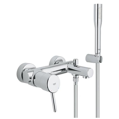 If you love to indulge in a relaxing bath, this bath tap of the Concetto range is your perfect choice. The Euphoria Cosmopolitan hand shower delivers a fine spray jet, turning your shower into a pleasant spa experience. Thanks to the GROHE EcoJoy water-saving technology, your water consumption is reduced to a maximum of 9.5 litres per minute. With our Inner WaterGuide, the hand shower with the GROHE Normal spray pattern will never be too hot to touch. A non-return valve is integrated to prevent any backflow of wastewater into your clean water supply. With our SpeedClean system, any limescale residue on the spray face can easily be wiped off with your fingers. Finished with the lustrous GROHE StarLight chrome coating, this tap will be a dazzling eye-catcher in your bathroom.