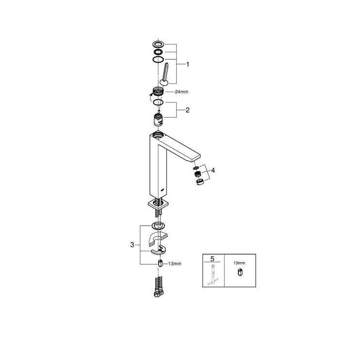 Turn on the style! With its clean lines based on the form of the classic cube, the extra high GROHE Eurocube Joy Single-lever basin mixer is perfect for anyone who wants a free-standing basin in a modern bathroom. It is packed with unique GROHE technology. The brand new FeatherControl system with ceramic disks has a joystick that can be moved easily in all directions with the fingertips for a simple and precise control of water flow and temperature. And it features the innovative GROHE QuickFix Plus system, which cuts the installation time by up to 50%. This elegant extra-high mixer tap complements the other products in the range such as the Eurocube Joy Single-lever bath mixer.