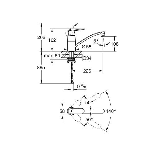 Maximum 140° turn lets you place your taps with confidenceFor the slightly narrower or boxed-in kitchen sink or bathroom basin. The tap has the classic smooth GROHE action but wont turn beyond 140°, so you can fit your sink or basin into a tight spot with complete peace of mind.