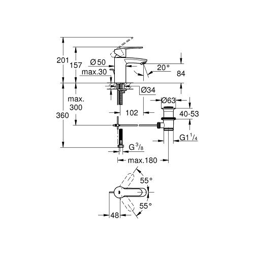 Design and functionality combined in a tap: this GROHE Eurostyle Cosmopolitan model offers all you would expect from a modern product - a chrome surface that is easy to clean, smooth lever operation and a design of elegant lines. The pop-up waste is convenient and easy for you to operate. Enjoy the perfect combination of a contemporary design with the trusted GROHE quality!