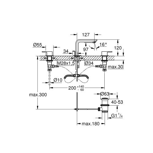 Grohe Lineare 1/2 Inch Medium Size Three Hole Basin Mixer