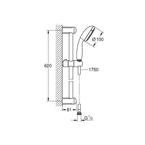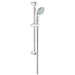 This New Tempesta 100 wall holder set comprises a shower head, a shower rail and a shower hose, saving you the trouble of hunting around for the individual parts. Crafted in an attractive design with the glossy GROHE StarLight chrome finish, the fittings are highly durable and super easy to clean. The ShockProof silicon ring protects the shower head from damage if dropped. The Rain spray envelops you in the soothing sensation of a soft, warm summer rain, turning your shower into a relaxing spa experience. The GROHE DreamSpray technology ensures an even flow and our SpeedClean anti-lime system prevents any build-up of limescale on the nozzles.