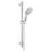 If you want to indulge in your daily shower and save water at the same time, this shower set is your perfect choice: the Power&Soul hand shower will reduce your water consumption without compromising on comfort. It comes with four different spray patterns to refresh your skin, from soft and soothing to powerful and invigorating: GROHE Rain O², Rain, Jet and Bokoma Spray. The set includes a 600 mm shower rail and adjustable metal wall-mounting brackets as well as convenient extras like the TwistFree shower hose and the GROHE QuickFix Plus system. For a quick and hassle-free installation, the latter allows you to use existing drill holes or position them in the joints between tiles. This set will make a durably attractive and highly functional addition to your bathroom.