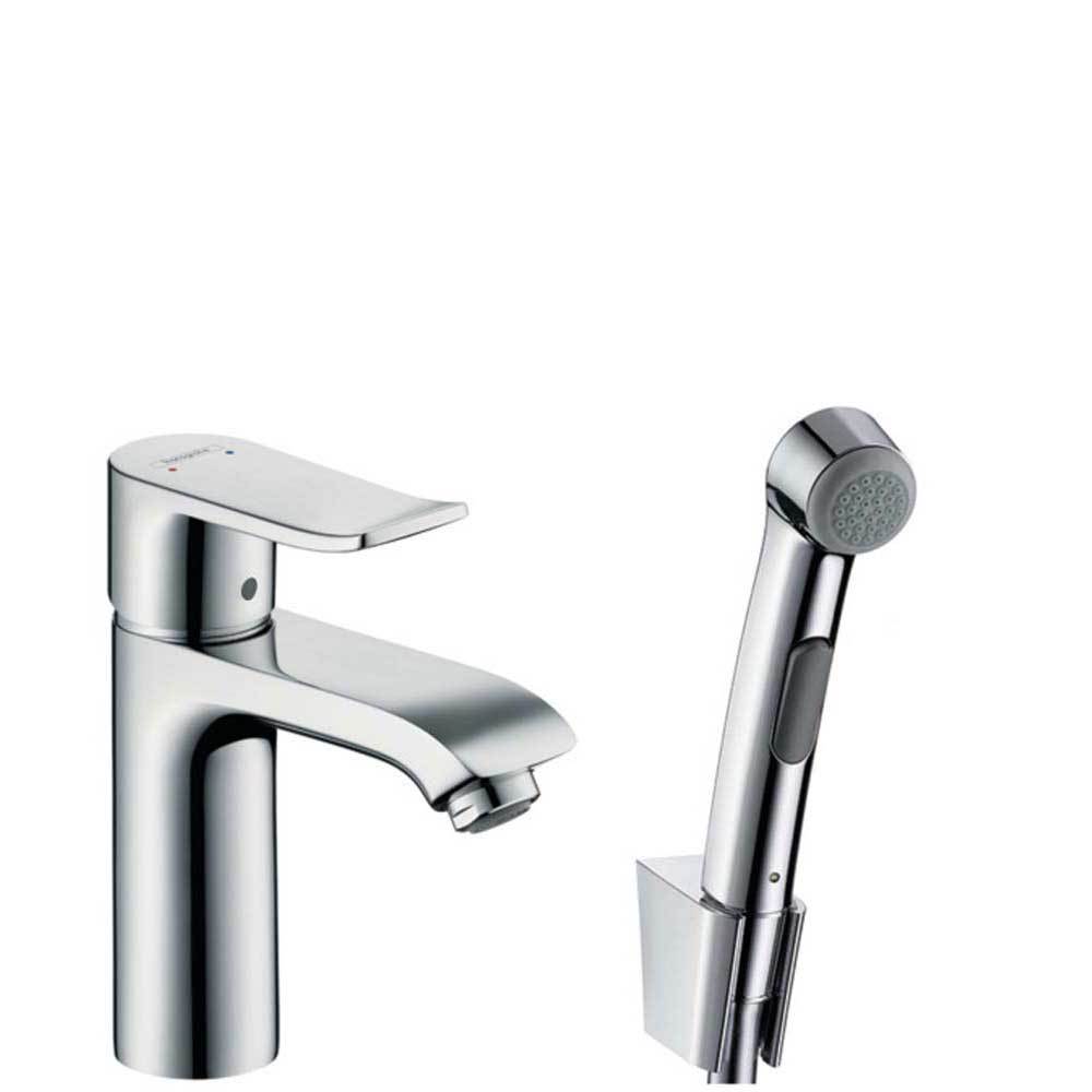 - Consists of: single lever basin mixer, bidet hand shower, shower holder, shower hose, waste set