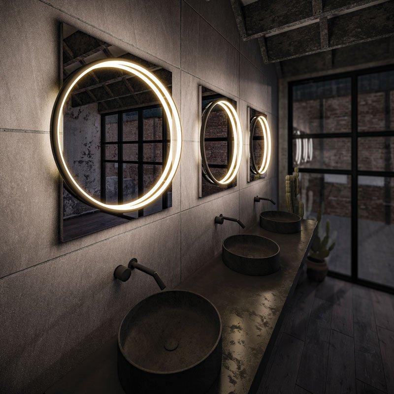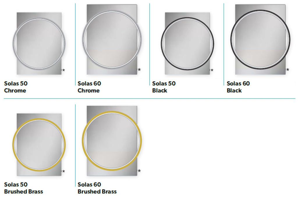 The circular LED light frame is available in Chrome and Brushed Brass with mirrored sides, or in a cutting-edge industrial Black. HiB Solas can be hung either landscape or portrait to suit your bathroom.