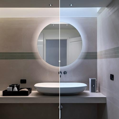 A range of round mirrors with colour temperature changing ambient LED lighting.