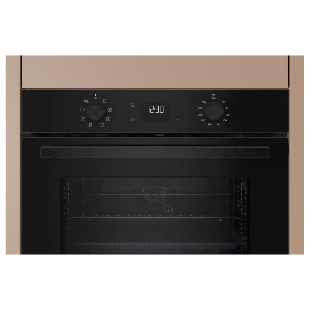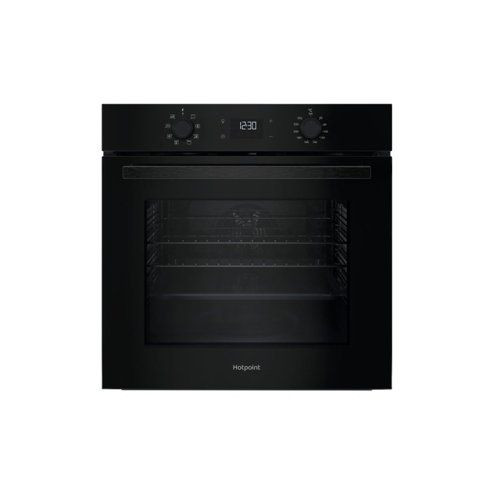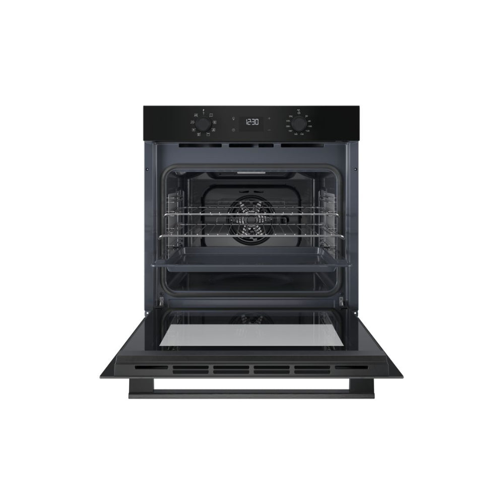 - A built in Hotpoint single electric oven in black